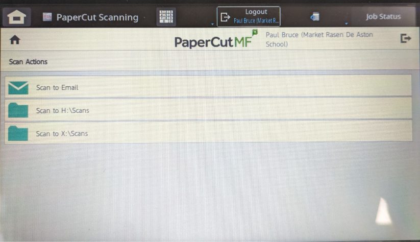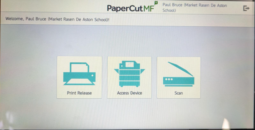 Firstly, you need to log into the printer; this can be done by either the RFID chip that you may have been given. Or a little long-winded, but you can also use the username and password given to log into one of the school computers.